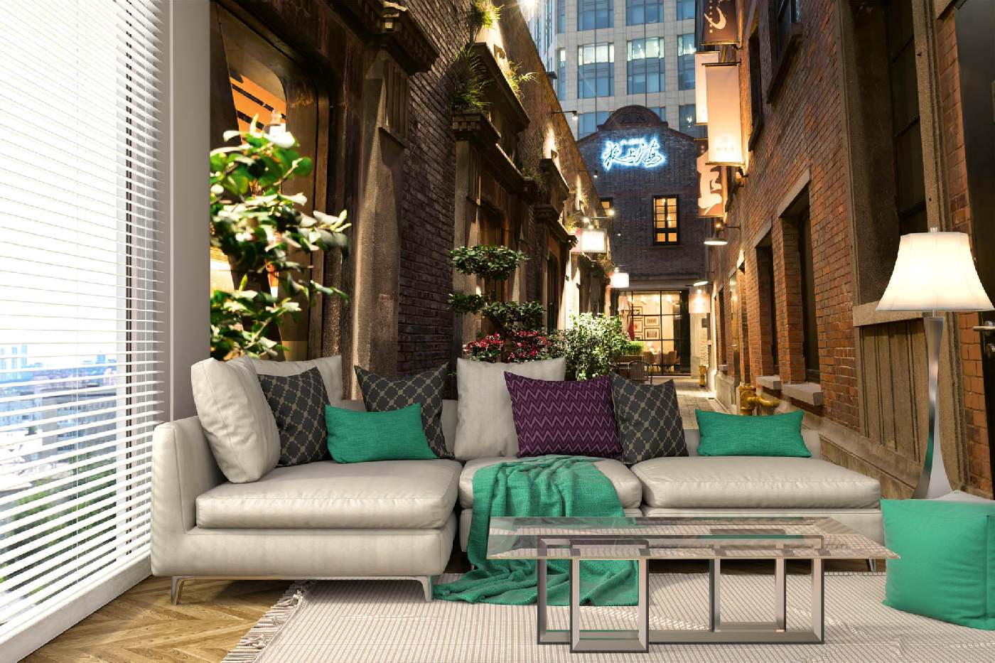 Öntapadós nem szőtt fotótapéta Egy szűk utca Sanghajban 375 x 250 cm