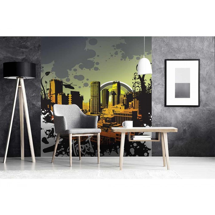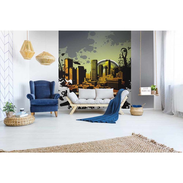 MS-3-0325 Nem szőtt fotótapéta Rajzolt város - 225 x 250 cm