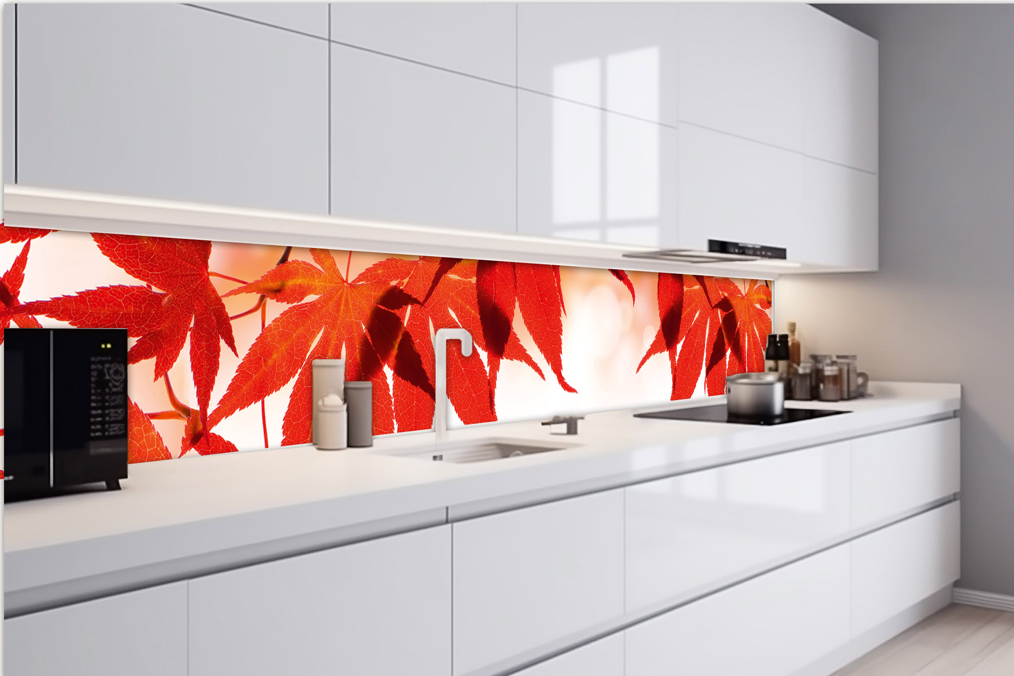 Konyhai fotótapéta - Vörös levelek 420 x 60 cm