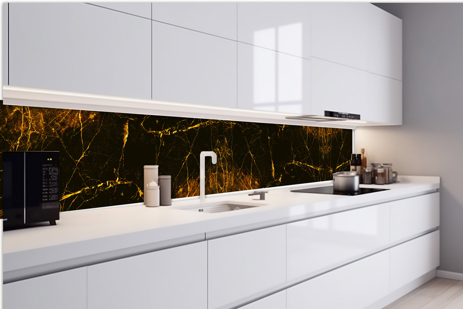 Konyhai fotótapéta - Fekete és arany márvány 420 x 60 cm