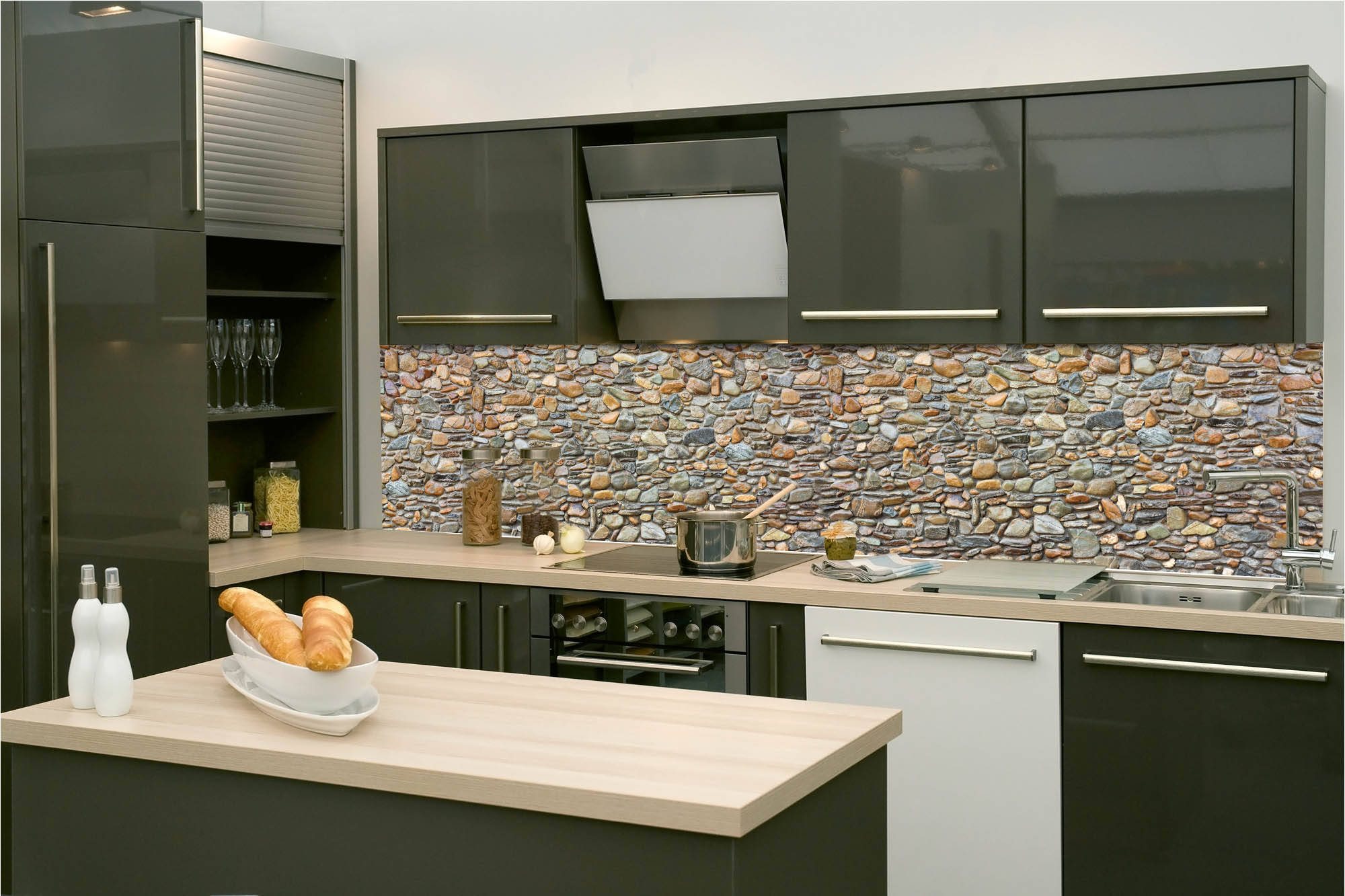 Konyhai fotótapéta - Kavicsos fal 260 x 60 cm