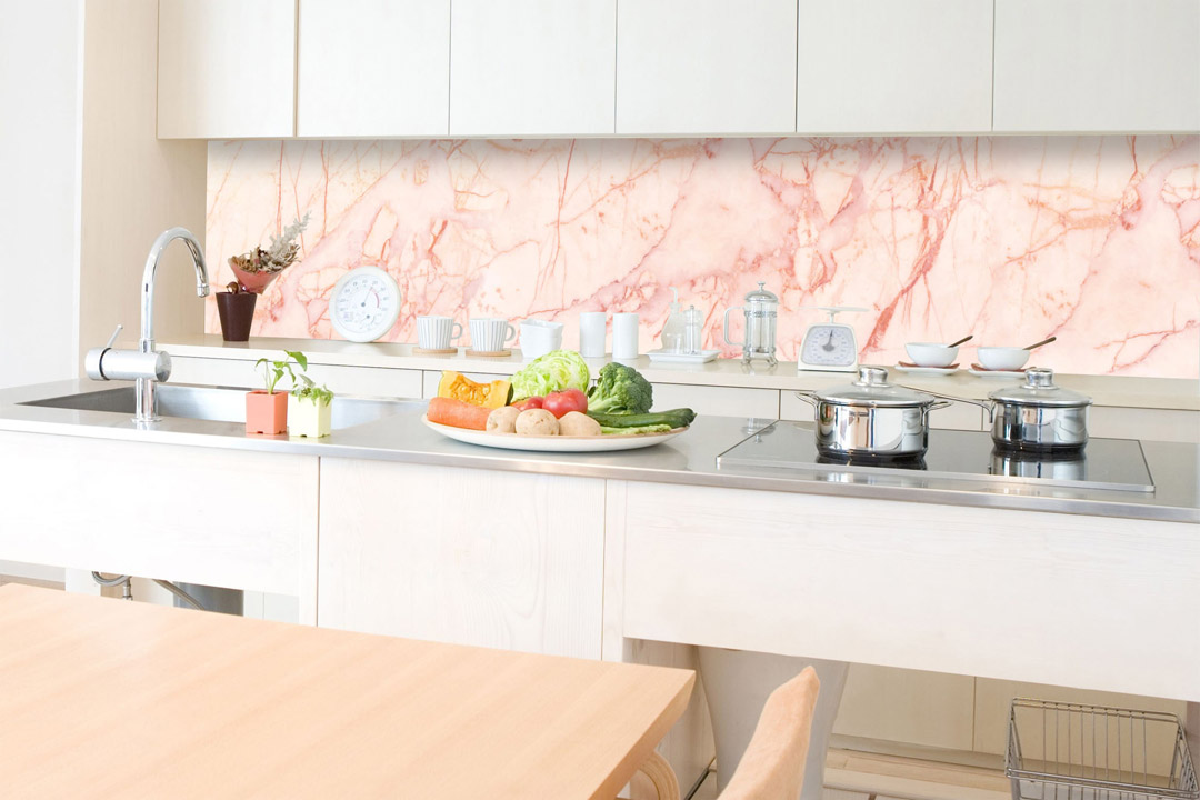 Konyhai fotótapéta - Rózsaszín márvány 350 x 60 cm