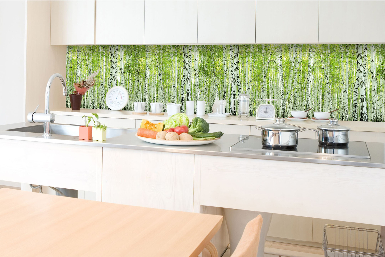 Konyhai fotótapéta - Tavaszi nyírfaliget 350 x 60 cm
