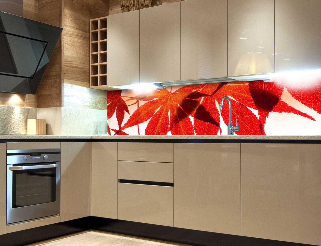 Konyhai fotótapéta - Vörös levelek 180 x 60 cm