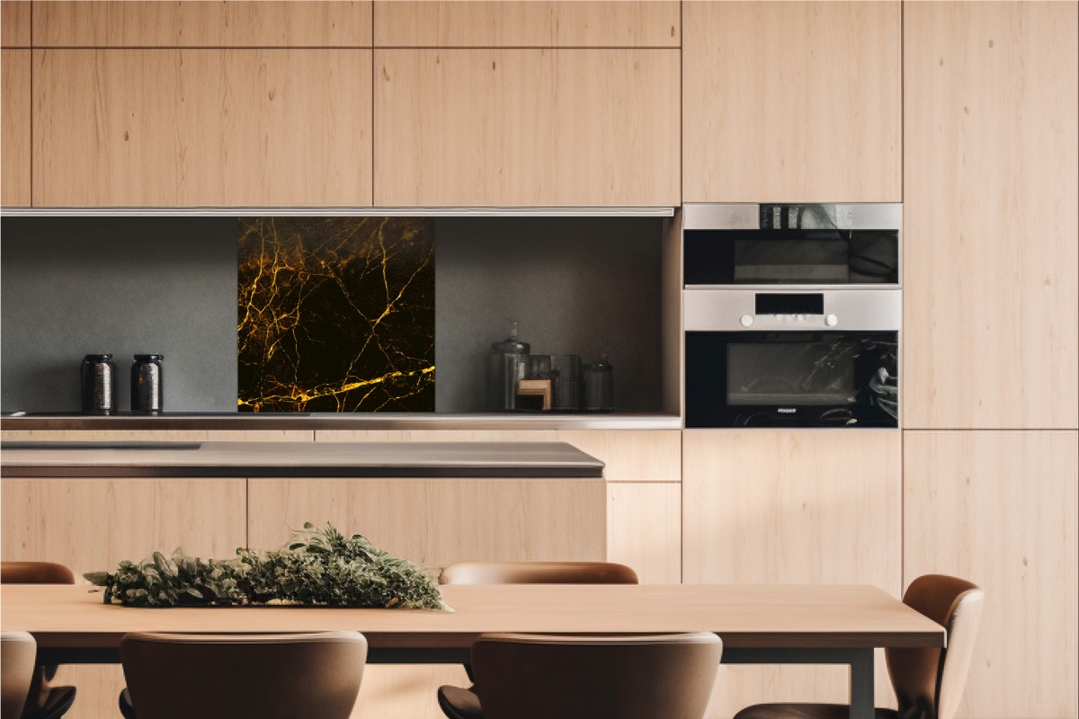 Dibond tábla a konyhapult mögött