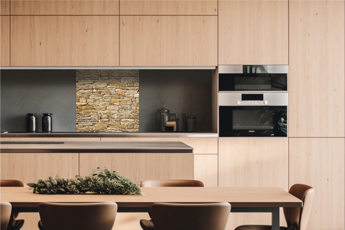 Dibond tábla a konyhapult mögött