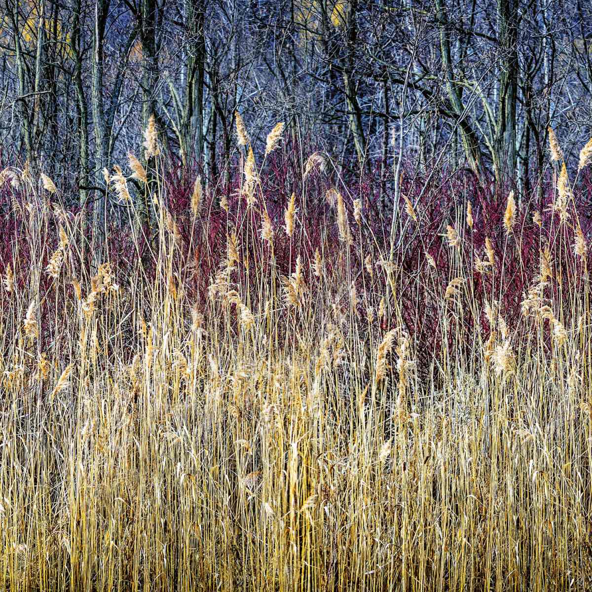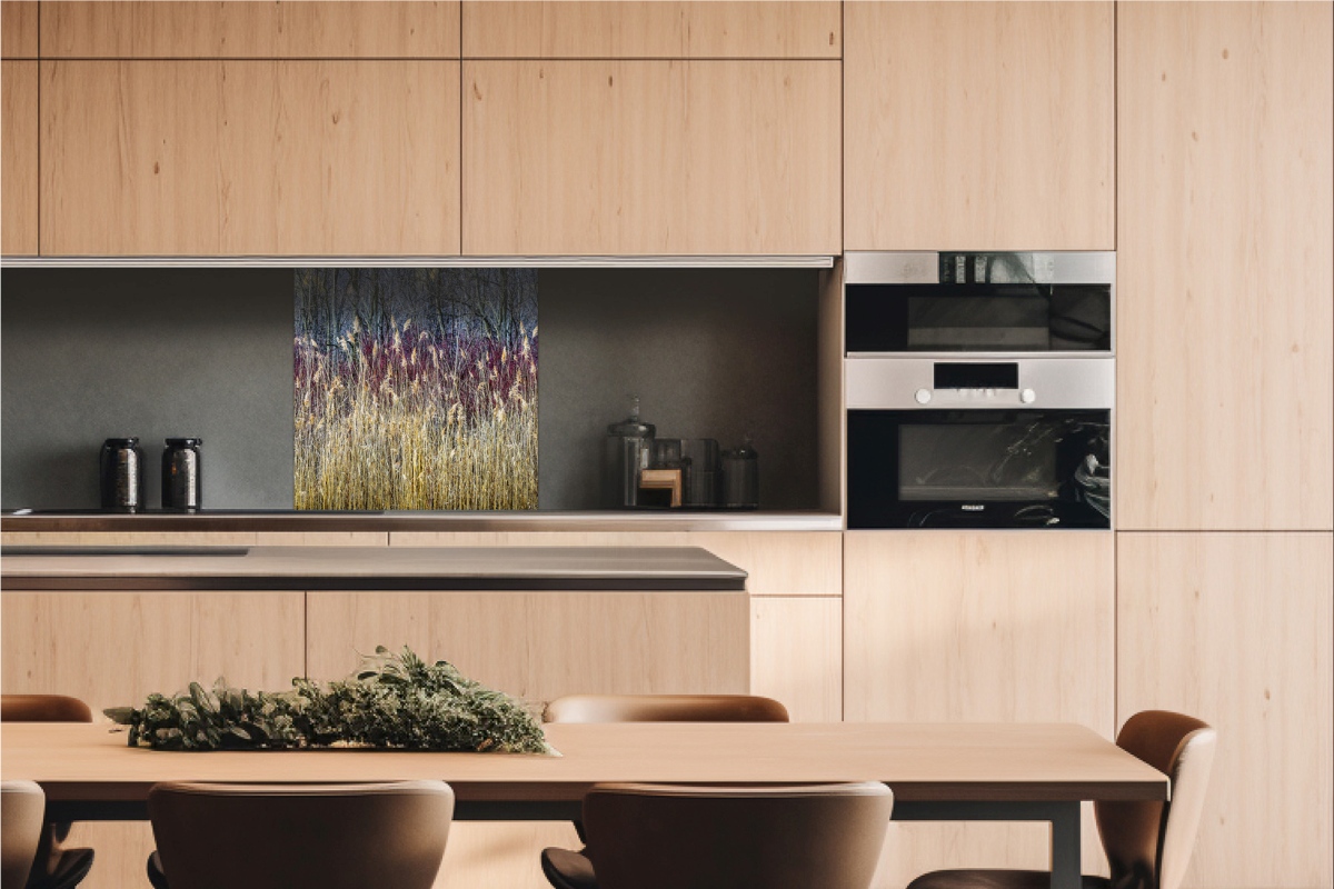 Dibond burkolólap Dimex konyhába Téli nád - 60x60 cm