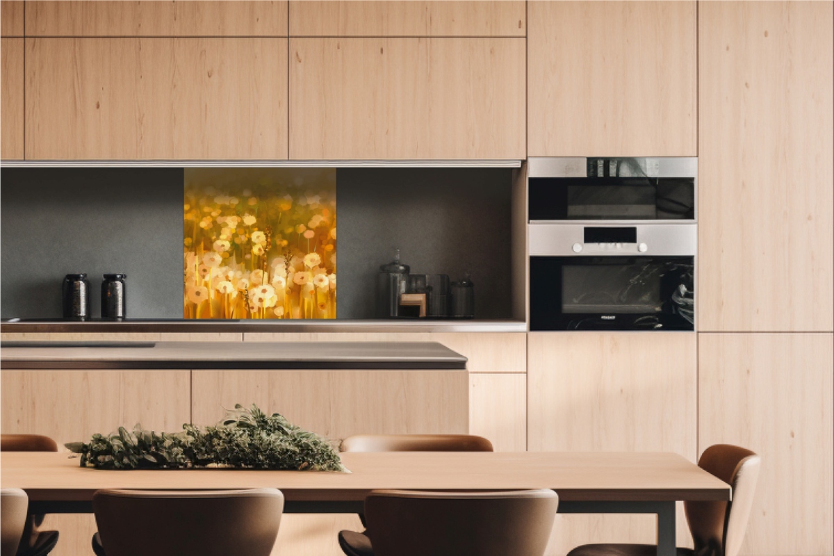 Dibond burkolólap Dimex konyhába Vintage mező pitypang - 60x60 cm