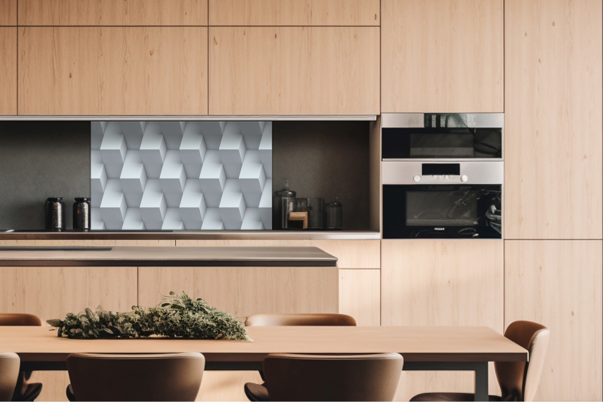 Dibond tábla a konyhapult mögött 3D köbös fal - 100 x 60 cm