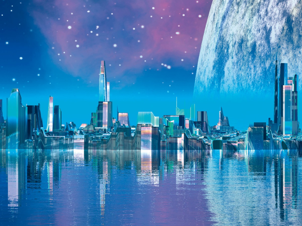 Dibond tábla a konyhapult mögött A jövő városa - 80 x 60 cm