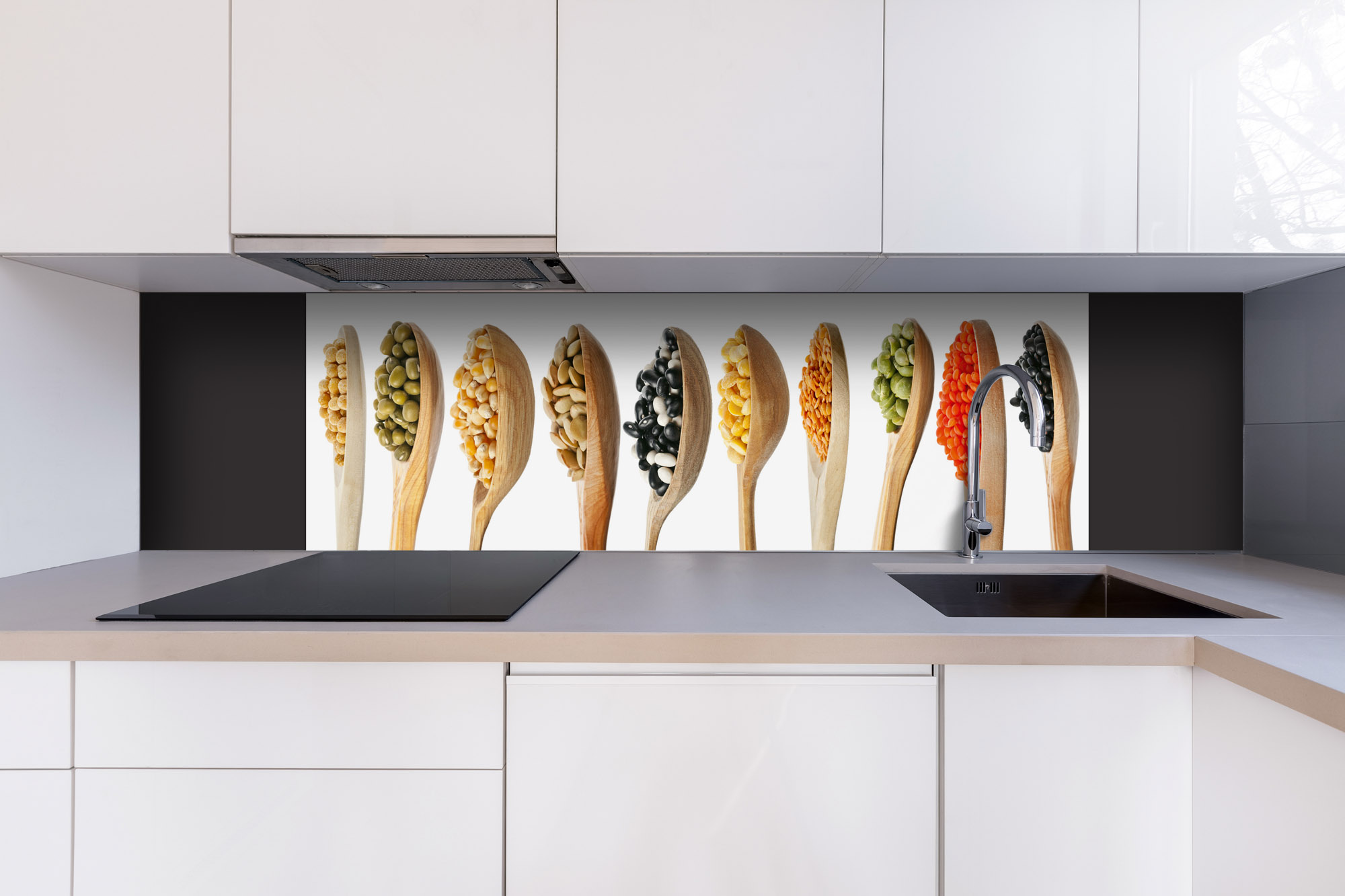 Dibond tábla a konyhapult mögött