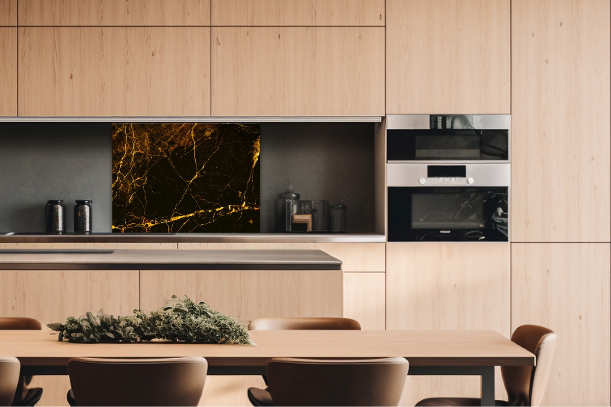 Dibond tábla a konyhapult mögött Fekete és arany márvány - 80 x 60 cm