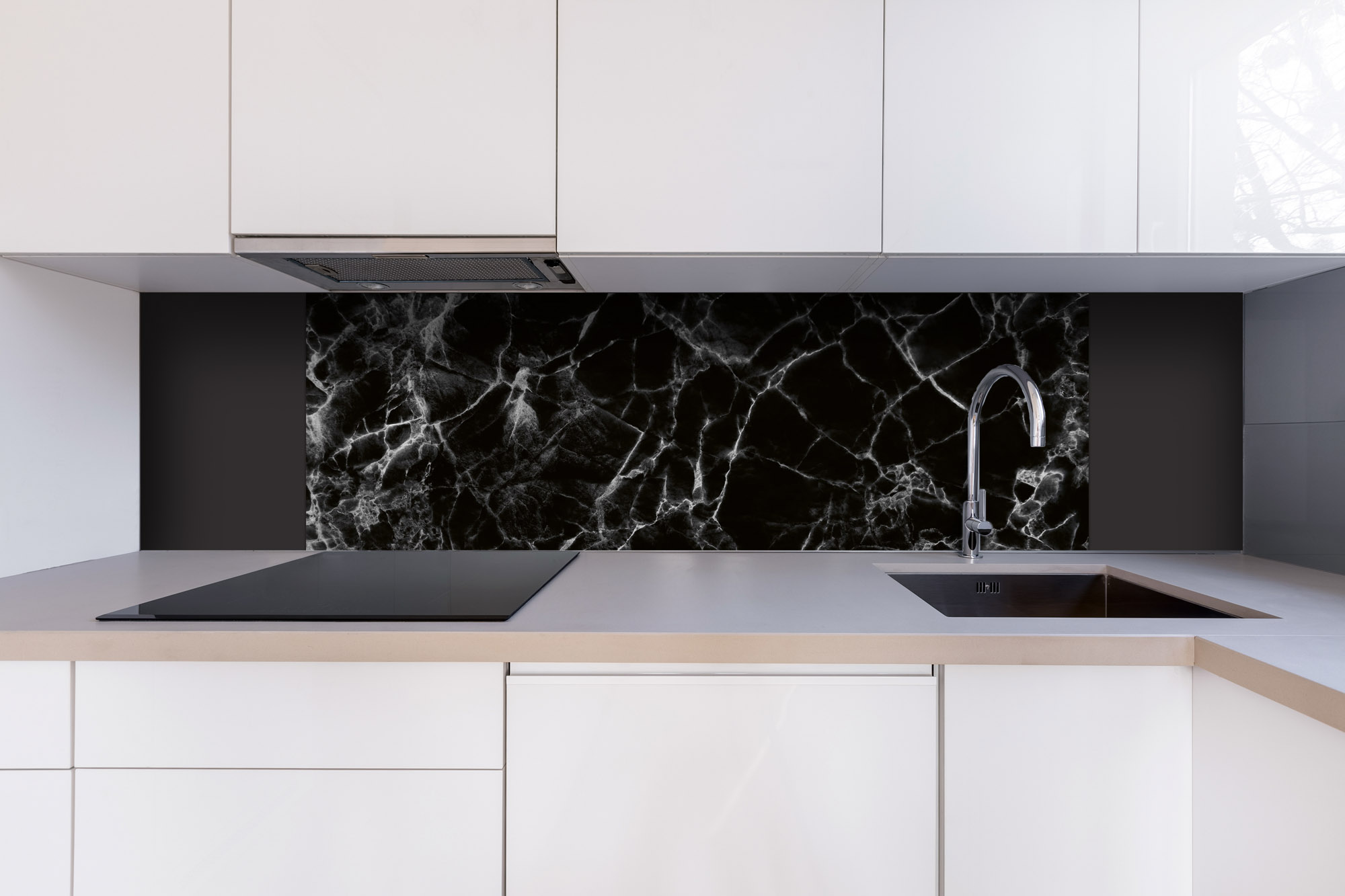 Dibond tábla a konyhapult mögött Fekete márvány - 180 x 60 cm