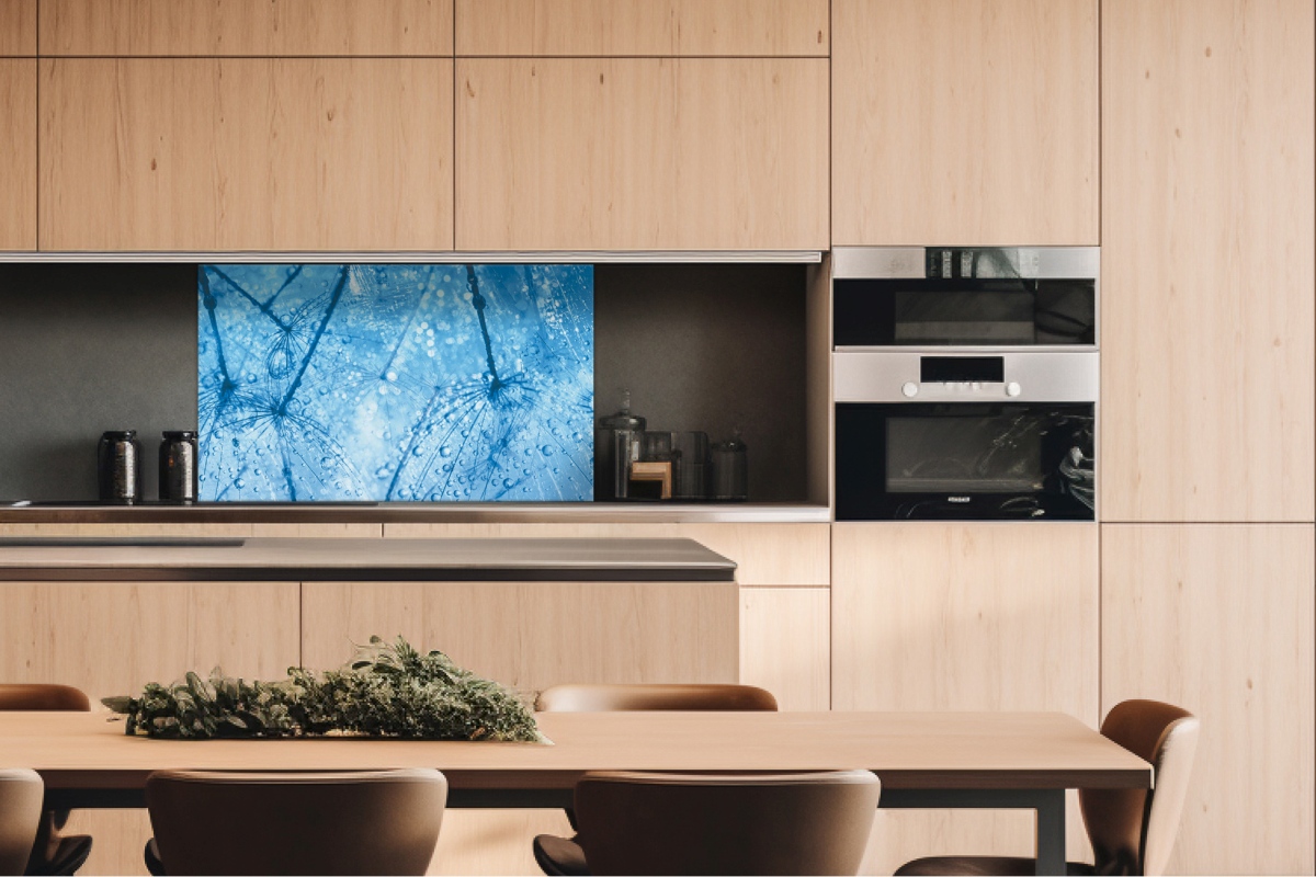 Dibond tábla a konyhapult mögött