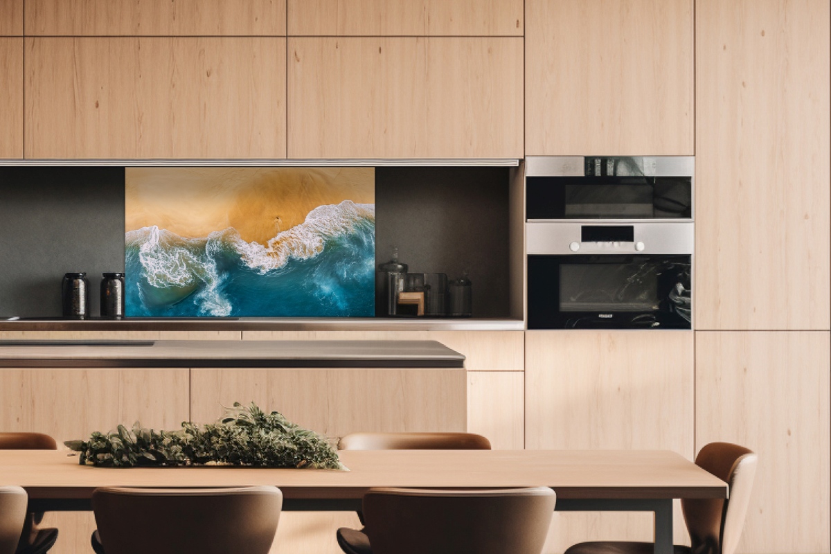 Dibond tábla a konyhapult mögött