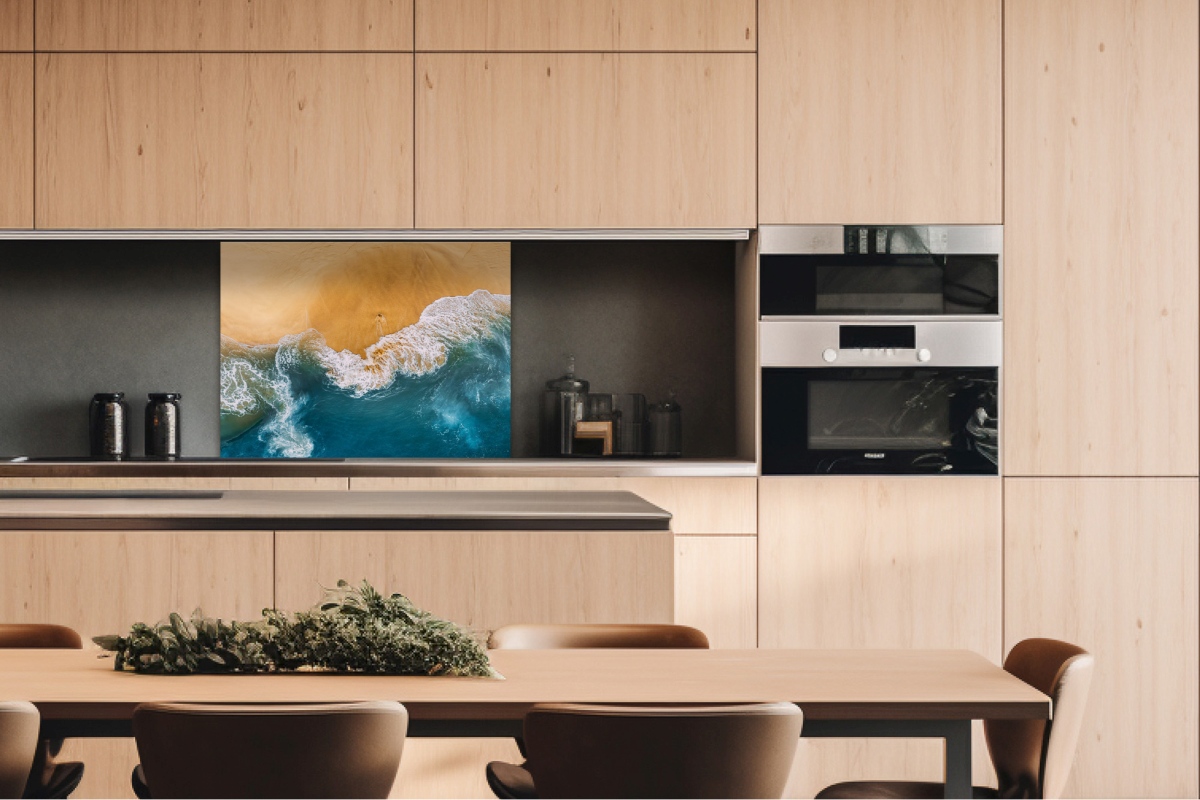 Dibond tábla a konyhapult mögött