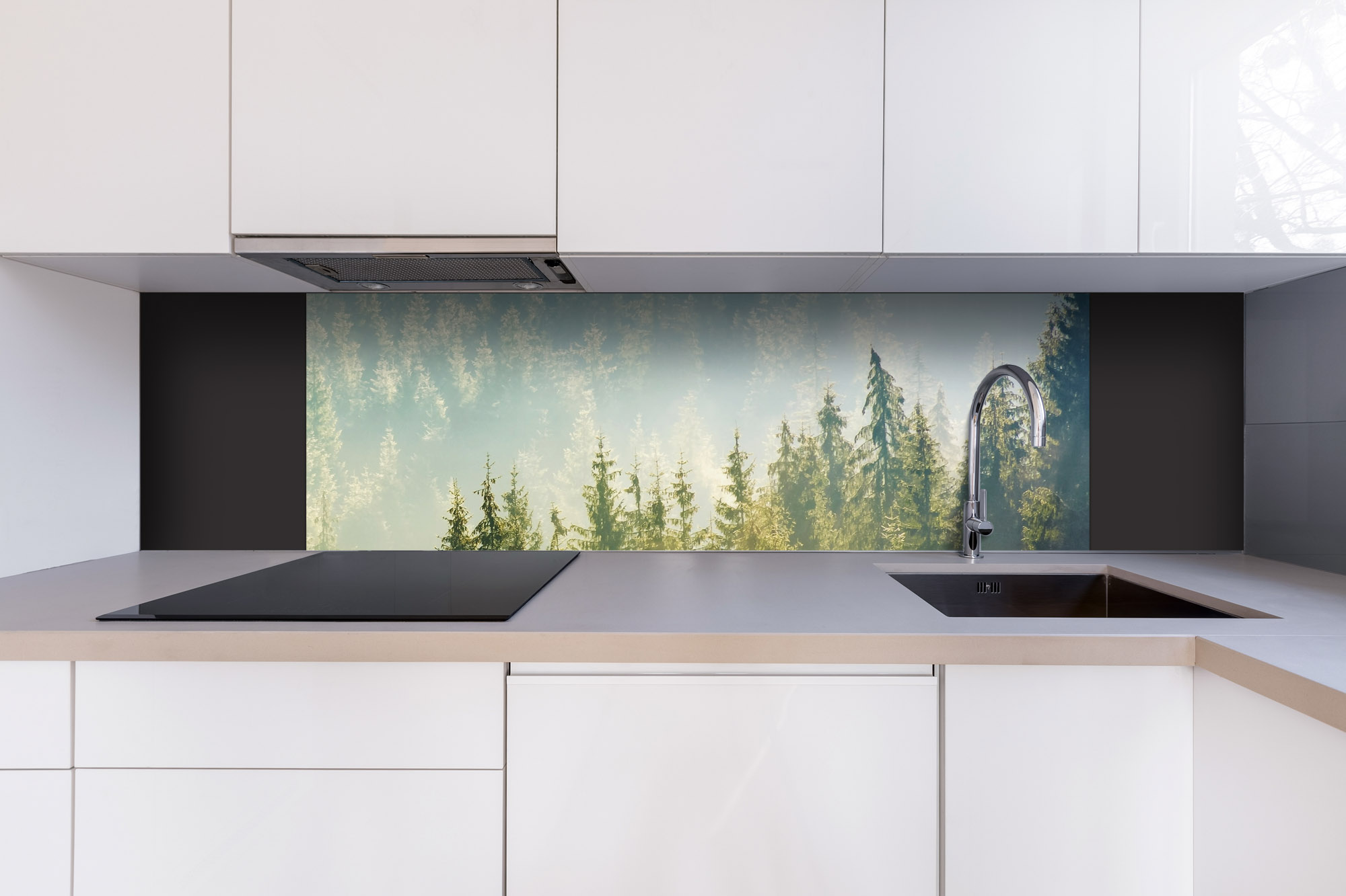 Dibond tábla a konyhapult mögött Köd az erdő felett - 180 x 60 cm