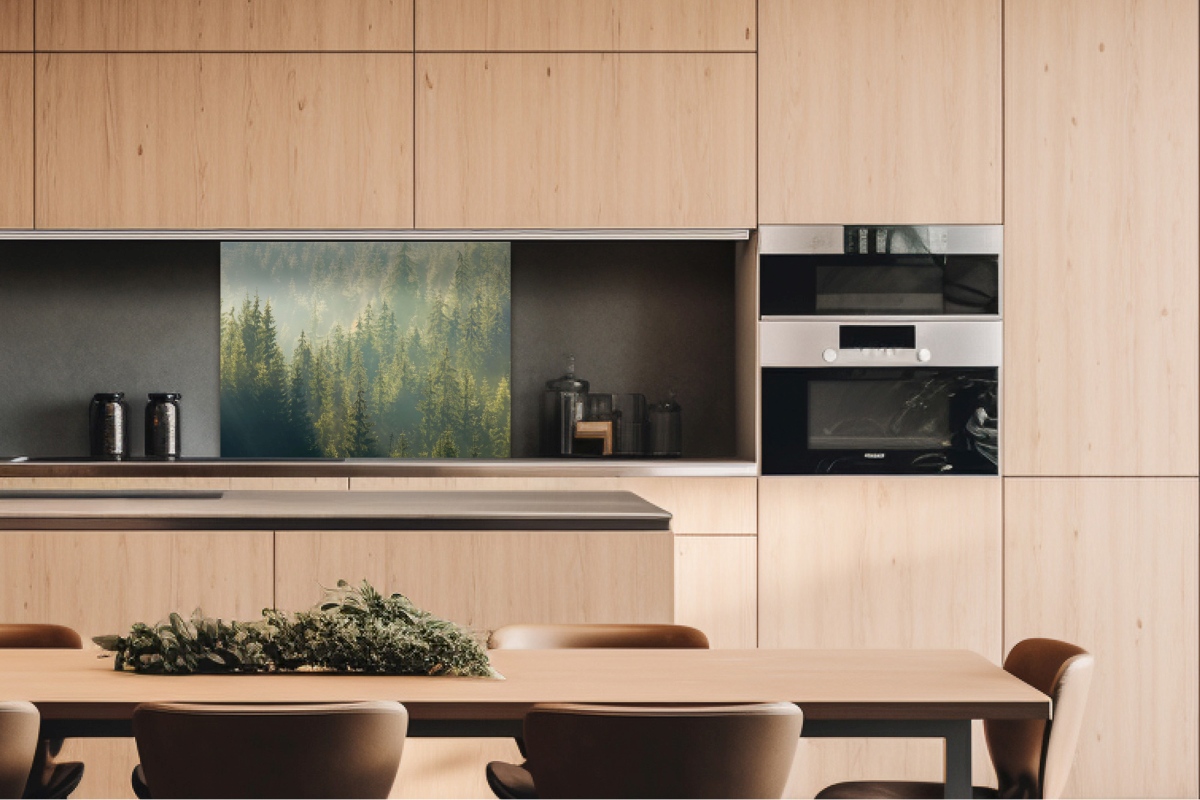 Dibond tábla a konyhapult mögött