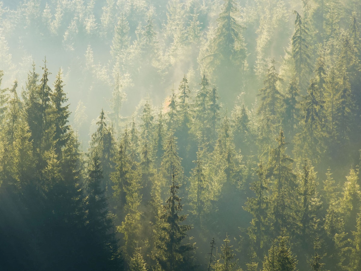 Dibond tábla a konyhapult mögött Ködös erdő - 80 x 60 cm