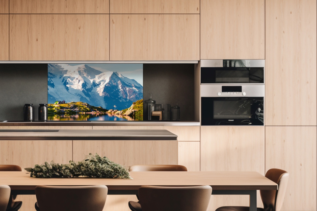 Dibond tábla a konyhapult mögött