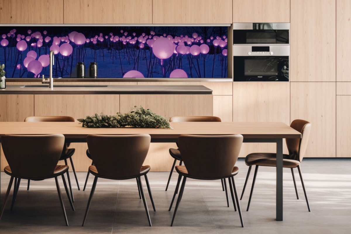 Dibond tábla a konyhapult mögött Lila kerti világítás - 260 x 60 cm