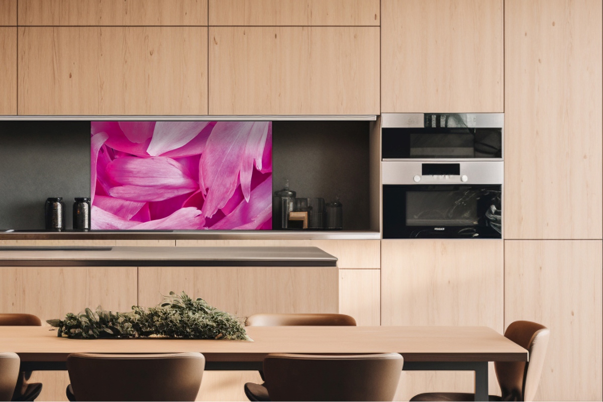 Dibond tábla a konyhapult mögött