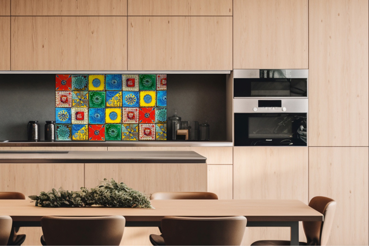 Dibond tábla a konyhapult mögött lisszaboni csempe - 100 x 60 cm