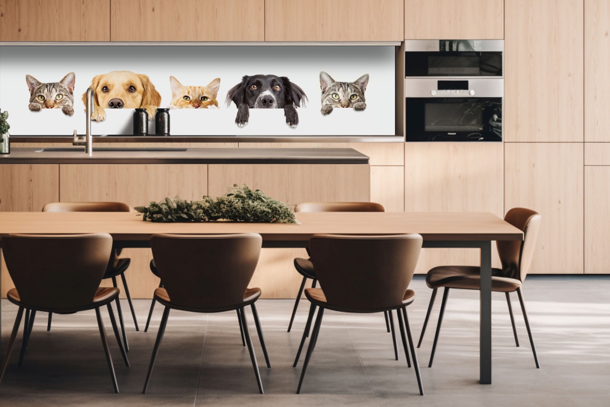 Dibond tábla a konyhapult mögött Macskák és kutyák - 260 x 60 cm