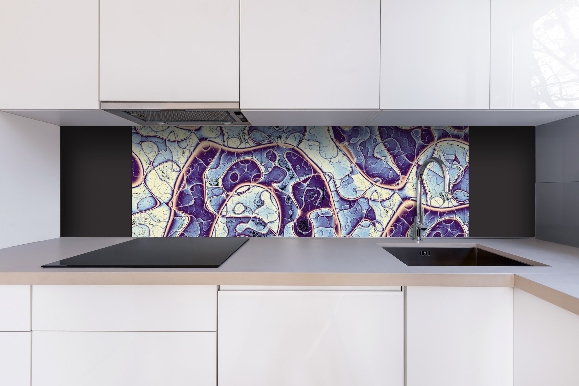 Dibond tábla a konyhapult mögött
