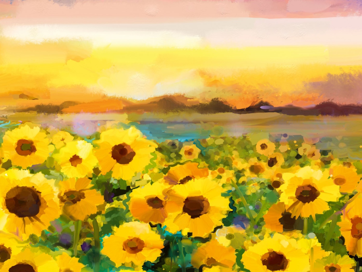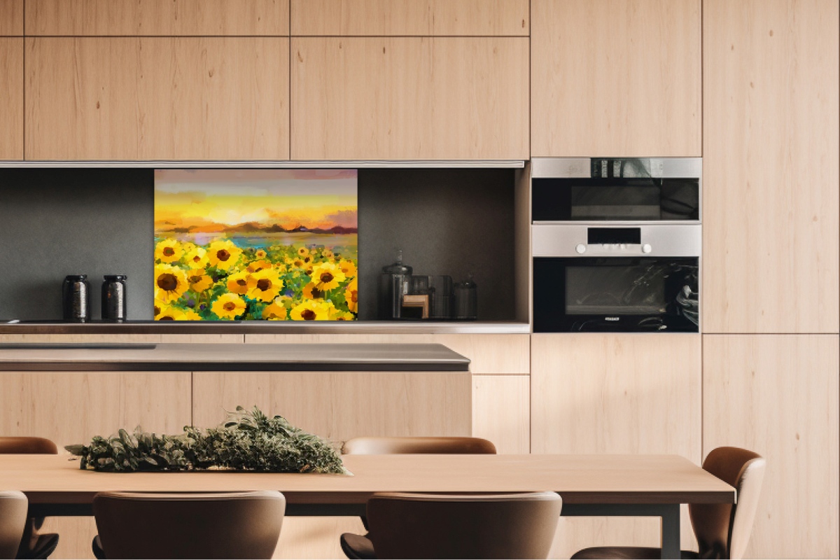 Dibond tábla a konyhapult mögött Napraforgó festmény - 80 x 60 cm