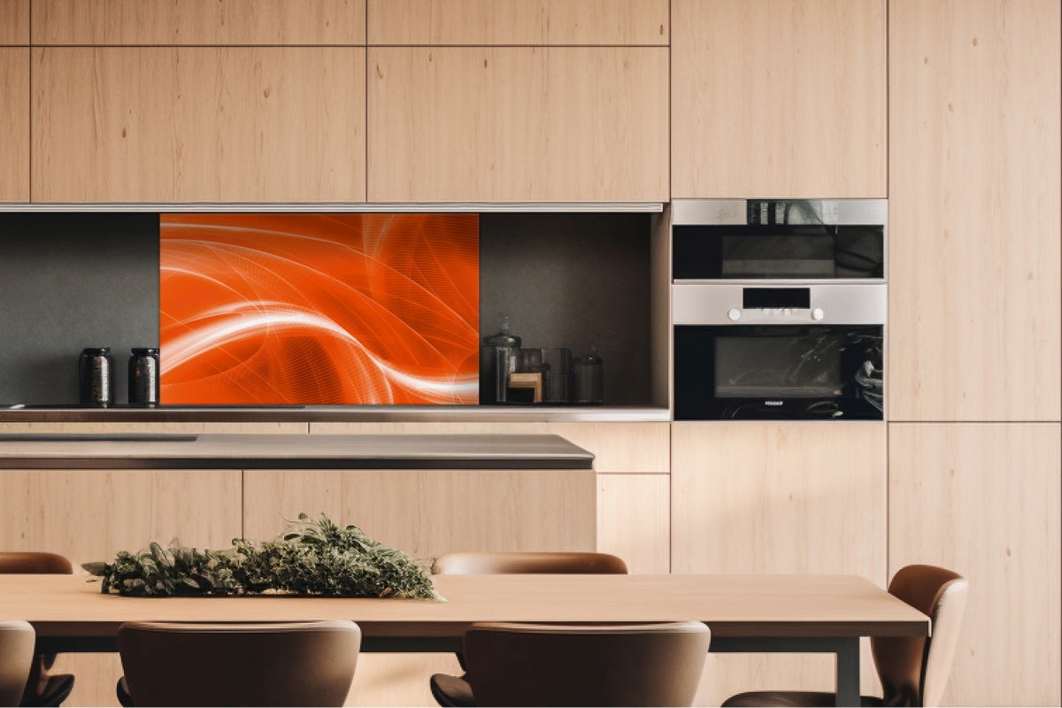 Dibond tábla a konyhapult mögött