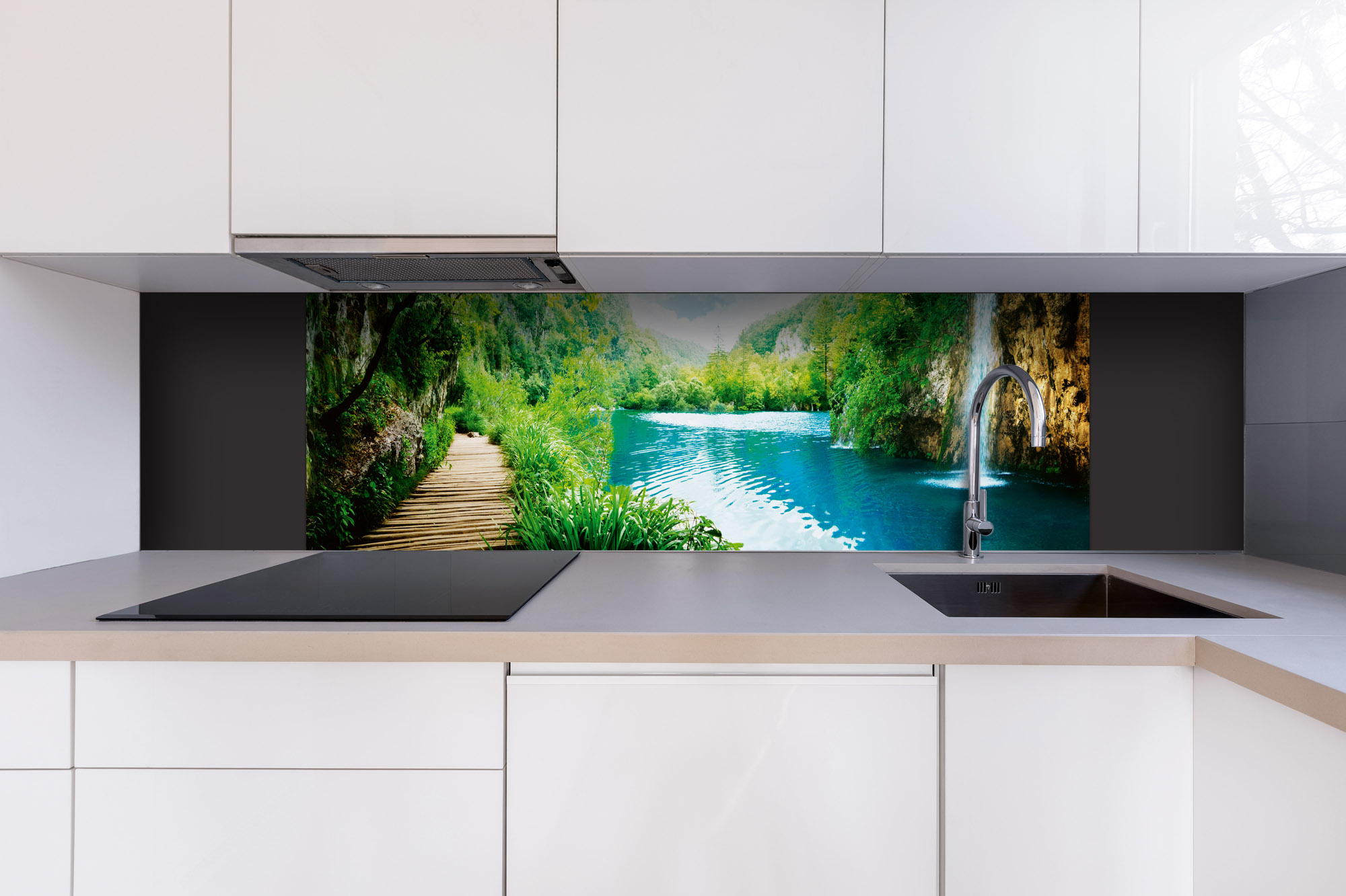 Dibond tábla a konyhapult mögött