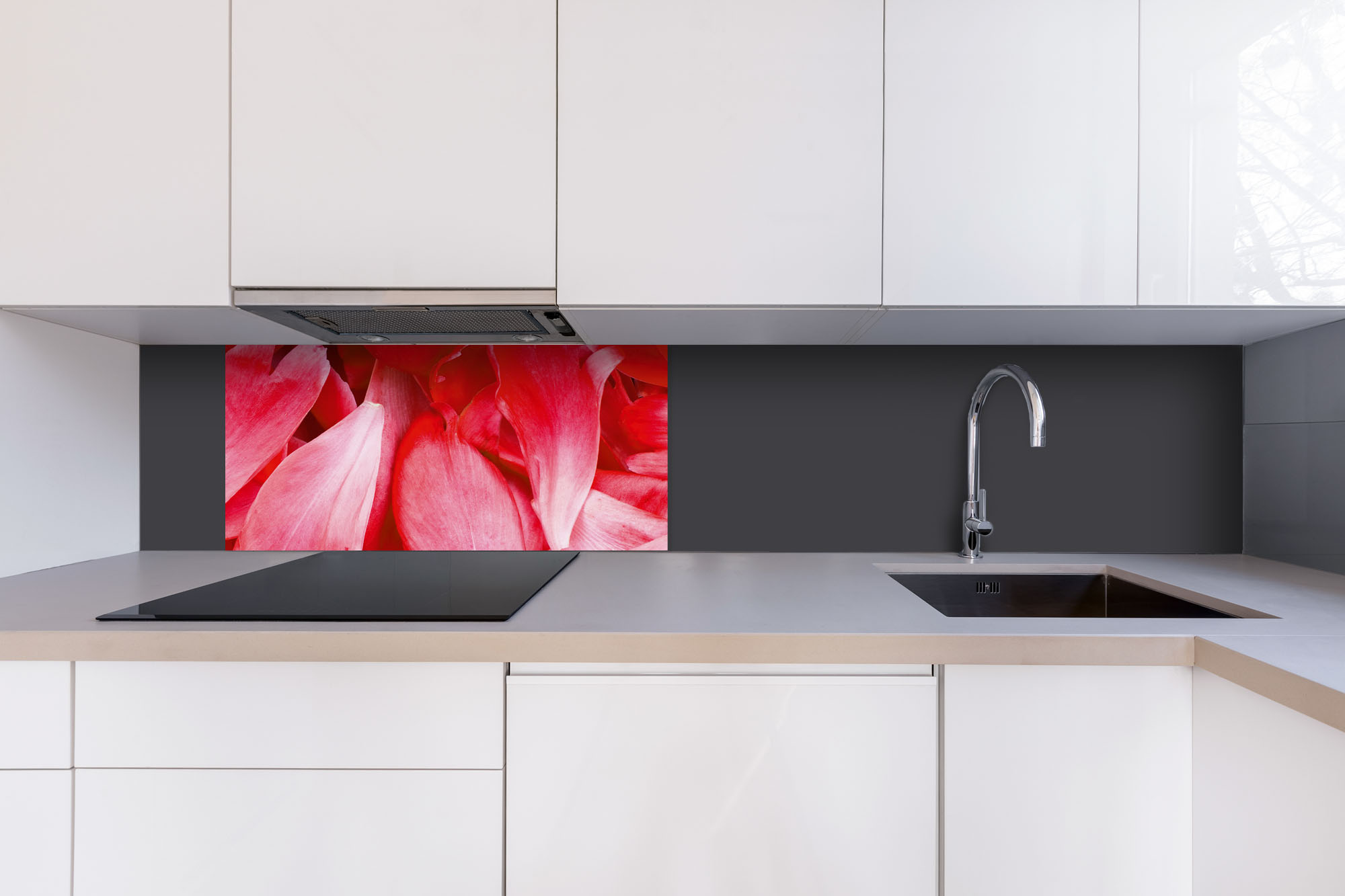 Dibond tábla a konyhapult mögött Piros szirmok - 80 x 40 cm
