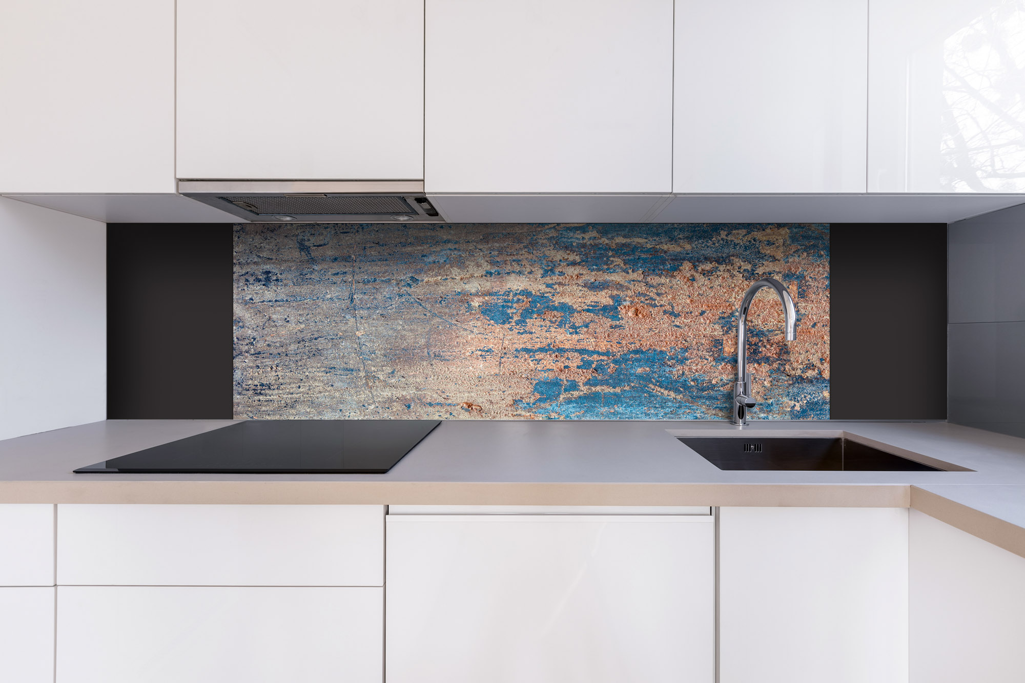 Dibond tábla a konyhapult mögött