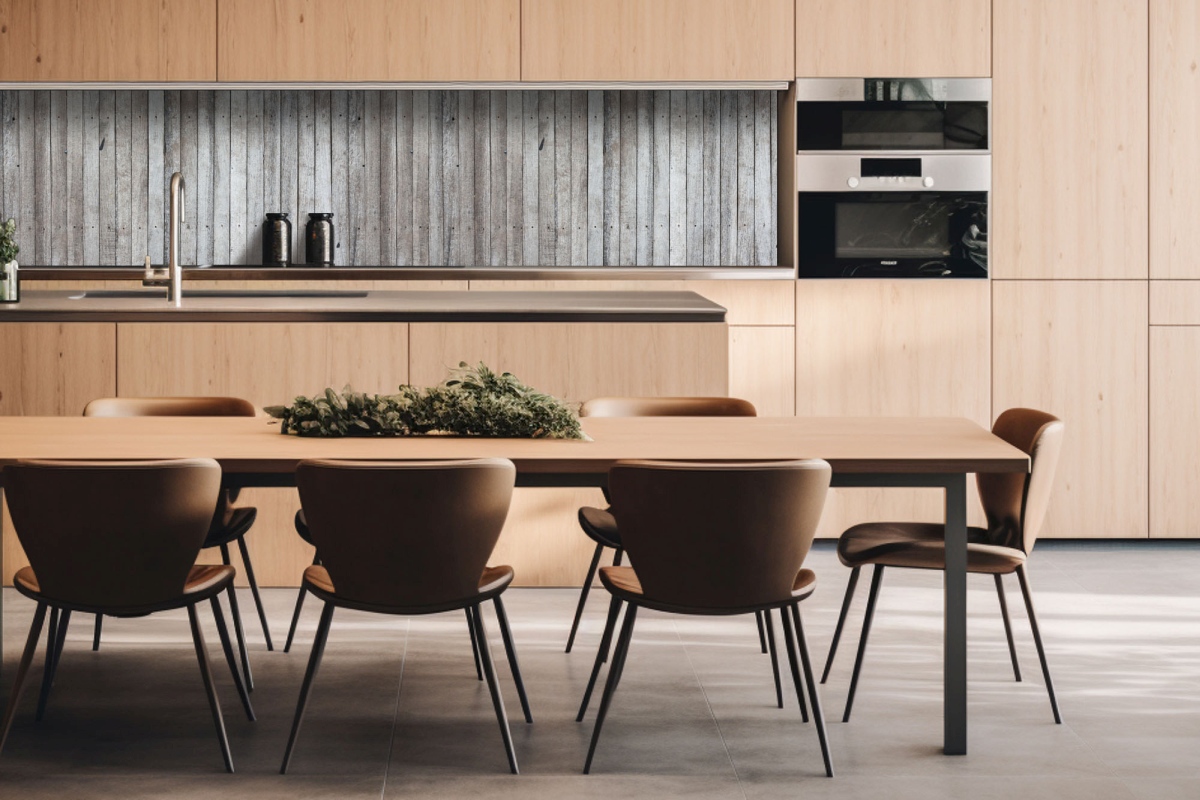 Dibond tábla a konyhapult mögött