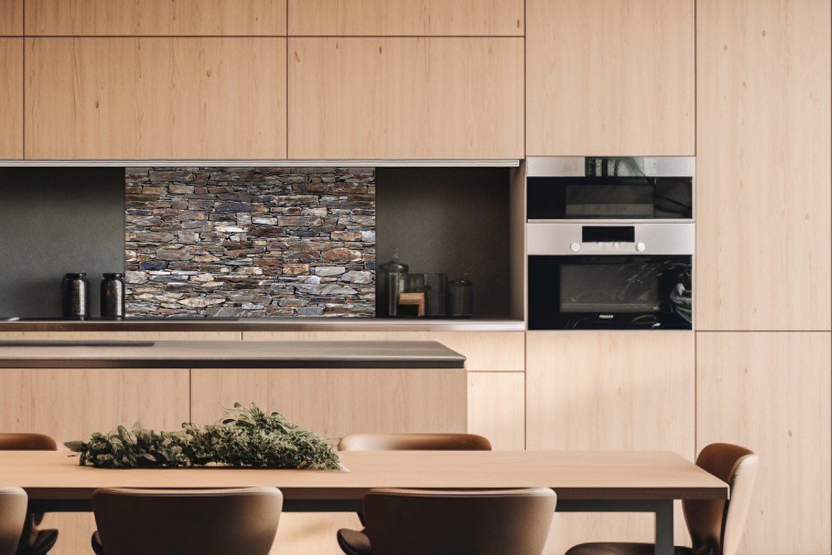 Dibond tábla a konyhapult mögött