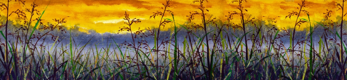 Dibond tábla a konyhapult mögött Réti fű farmer festménye - 260 x 60 cm