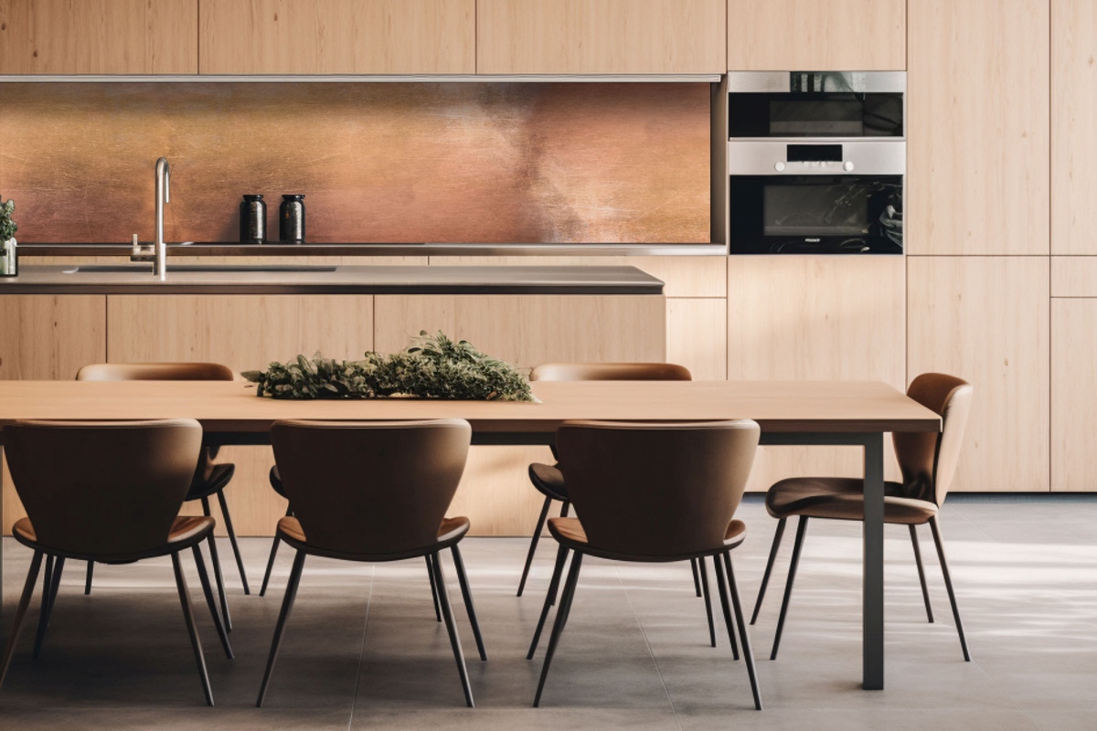 Dibond tábla a konyhapult mögött Réz minta - 260 x 60 cm
