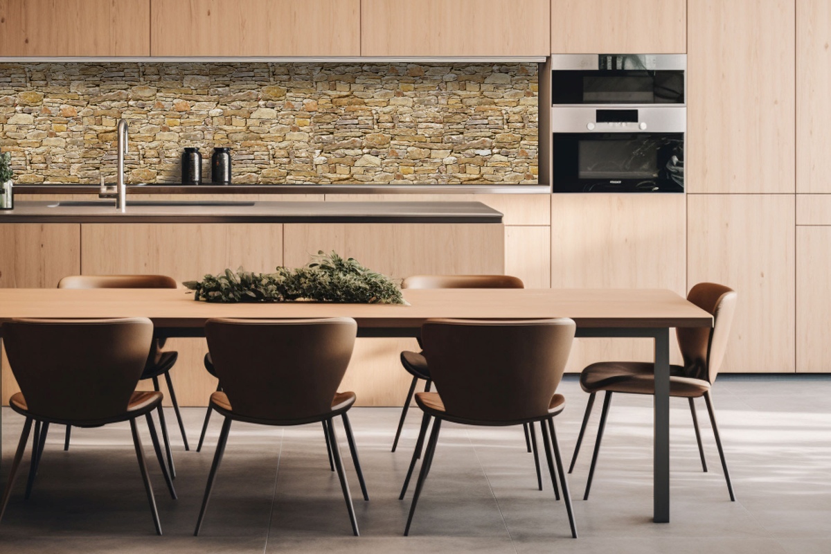 Dibond tábla a konyhapult mögött Rusztikus bézs fal - 260 x 60 cm