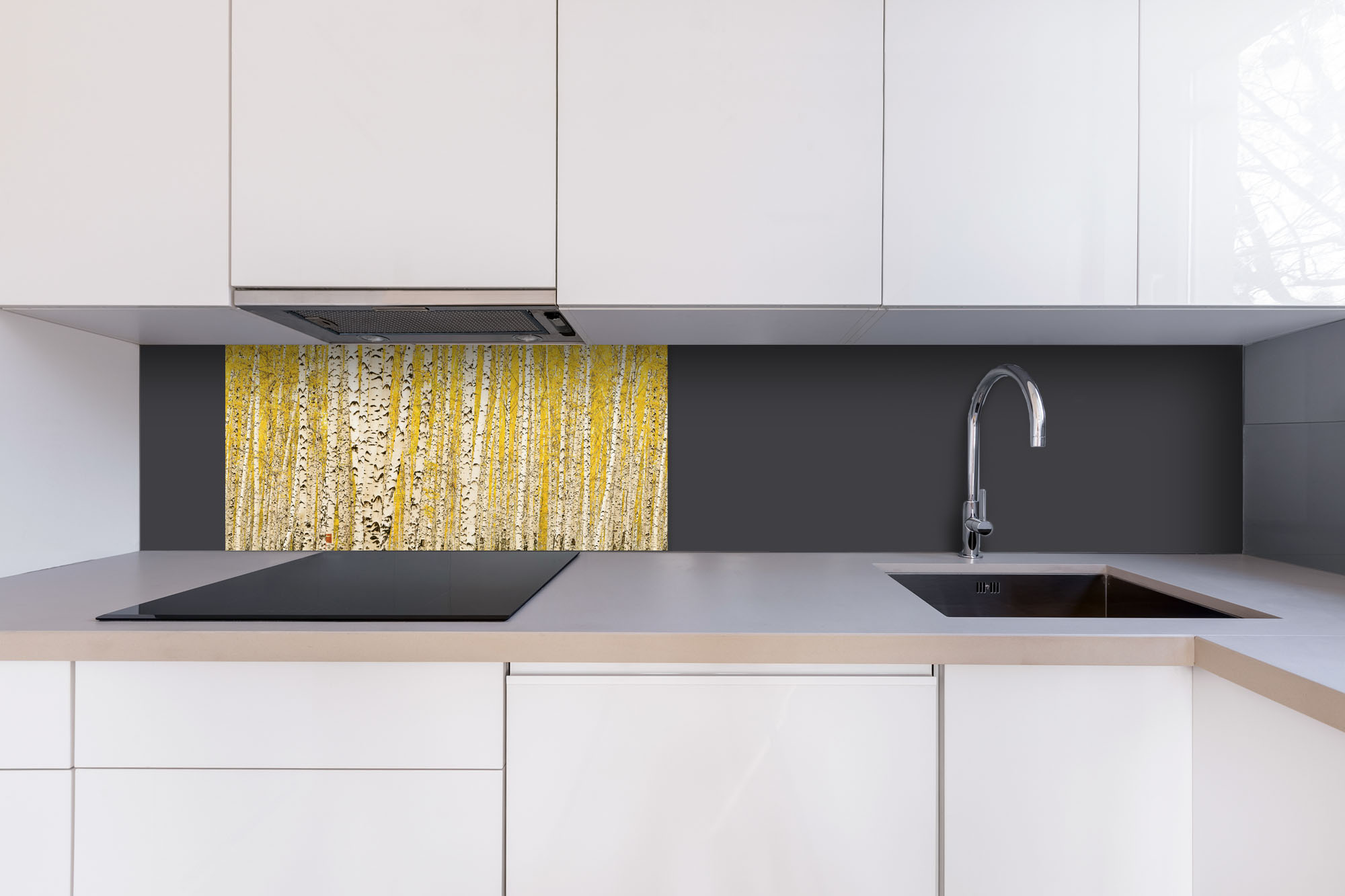 Dibond tábla a konyhapult mögött Sárga nyírfaliget - 80 x 40 cm