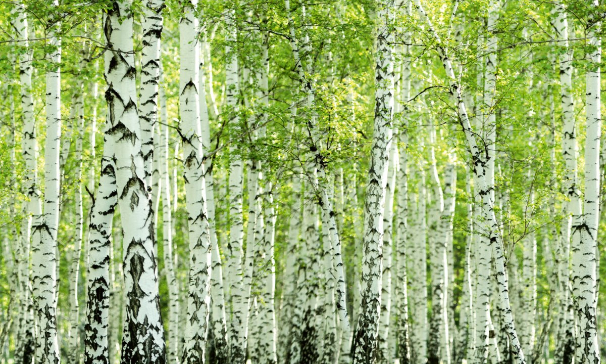 Dibond tábla a konyhapult mögött Tavaszi nyírfaliget - 100 x 60 cm