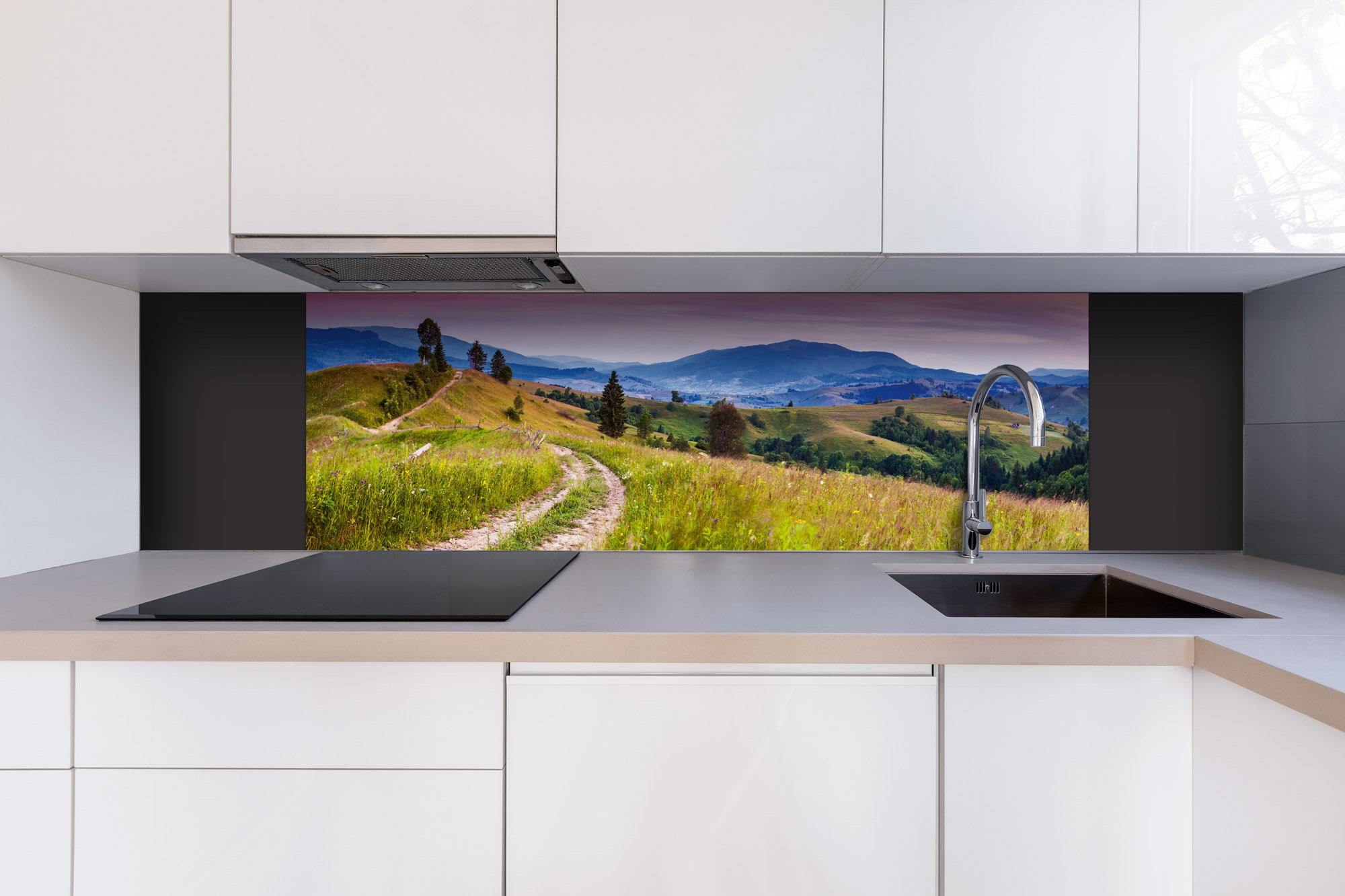 Dibond tábla a konyhapult mögött