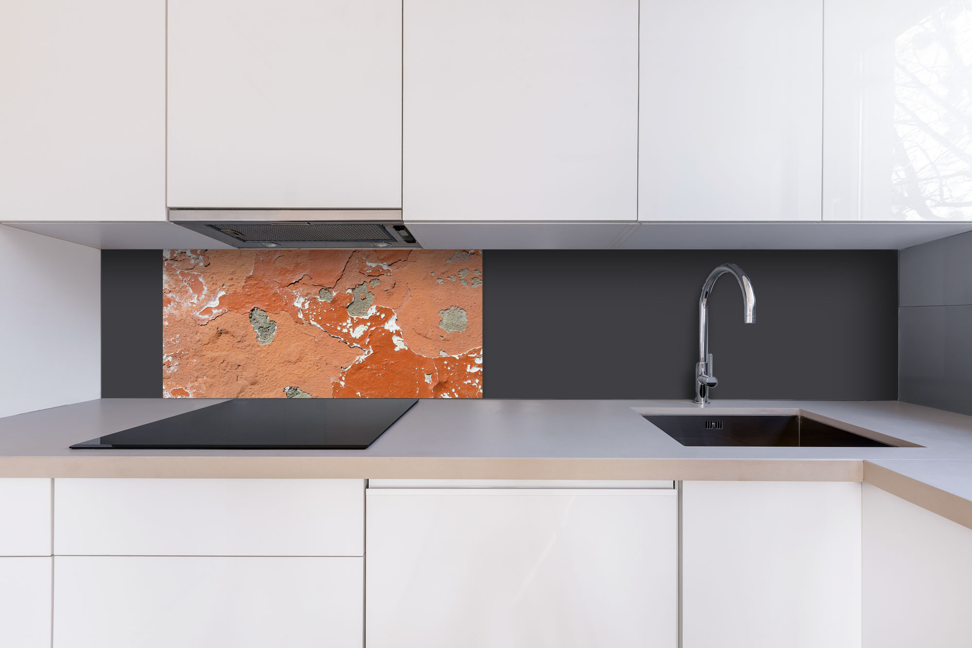 Dibond tábla a konyhapult mögött