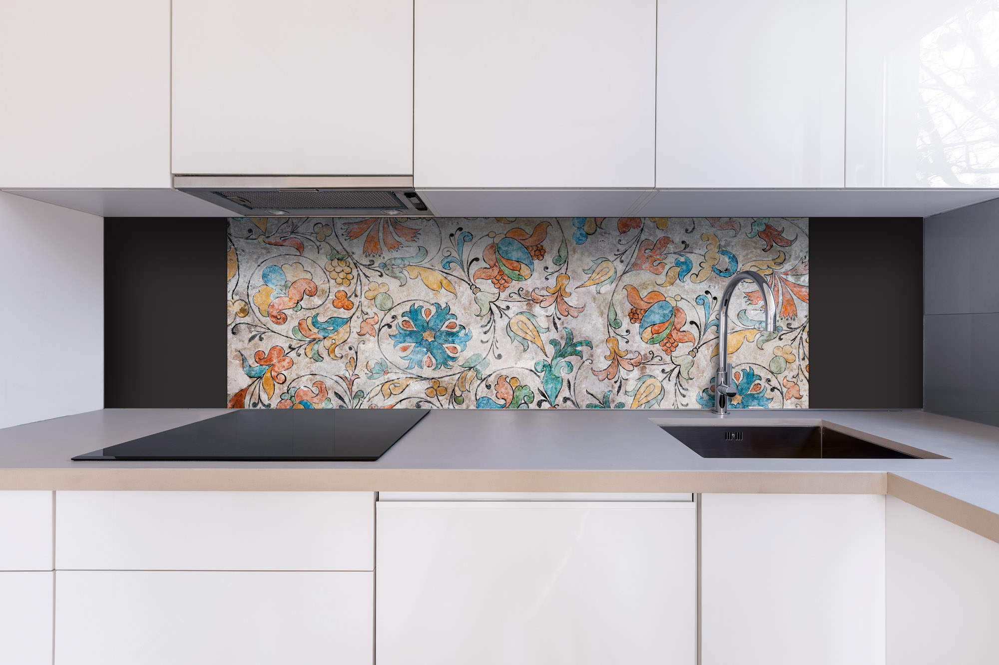 Dibond tábla a konyhapult mögött Virágos olasz freskó - 180 x 60 cm